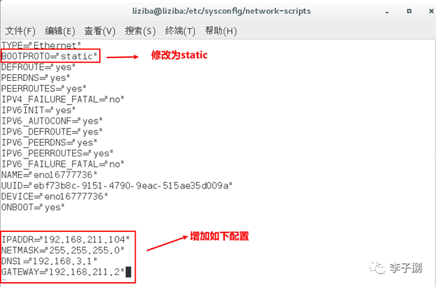 IPADDR=”192.168.211.104” # 当前设置的固定IP地址,注意网段与VMnet8一致